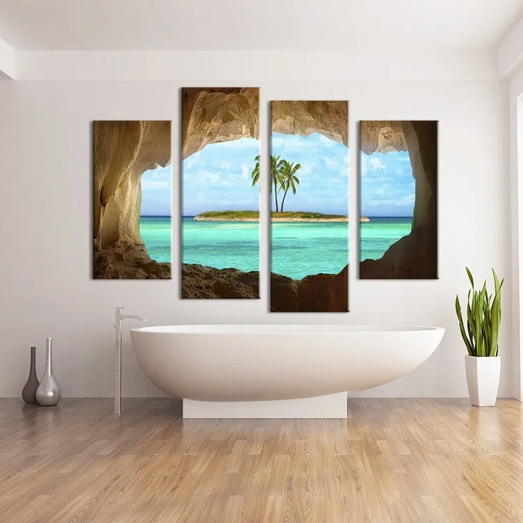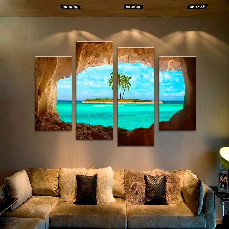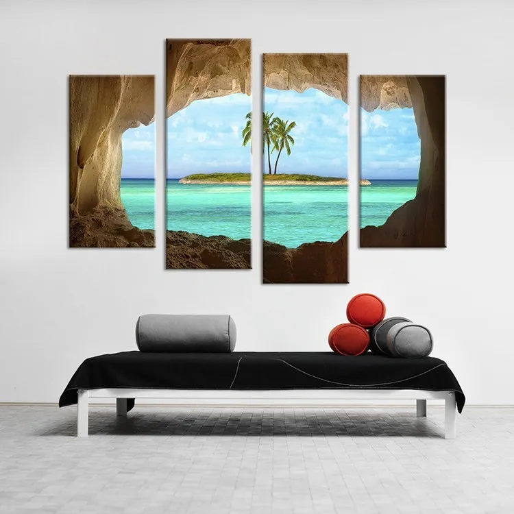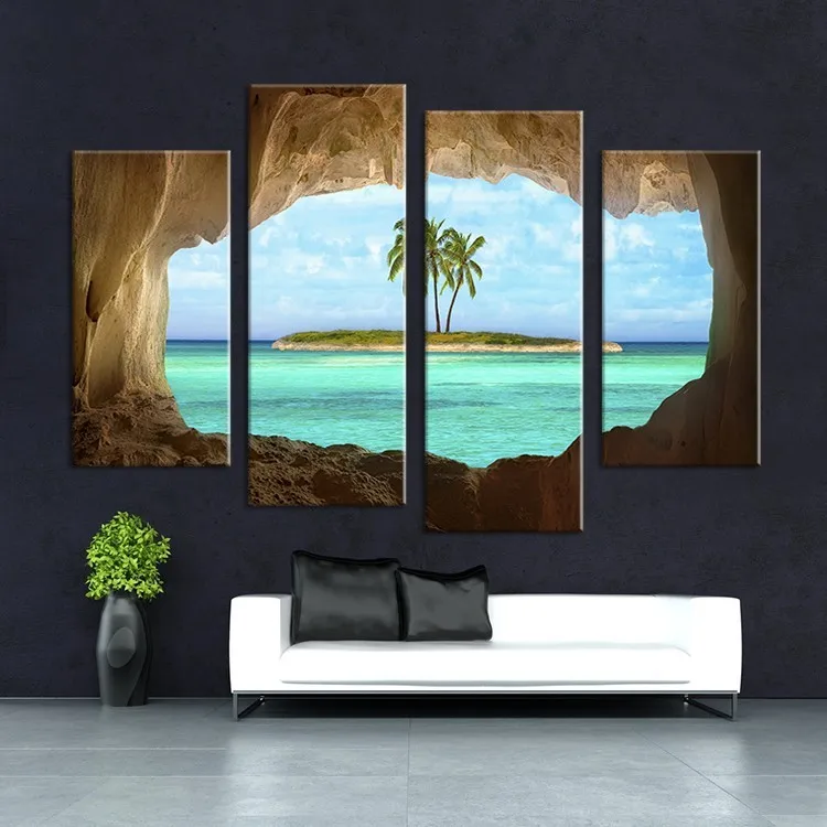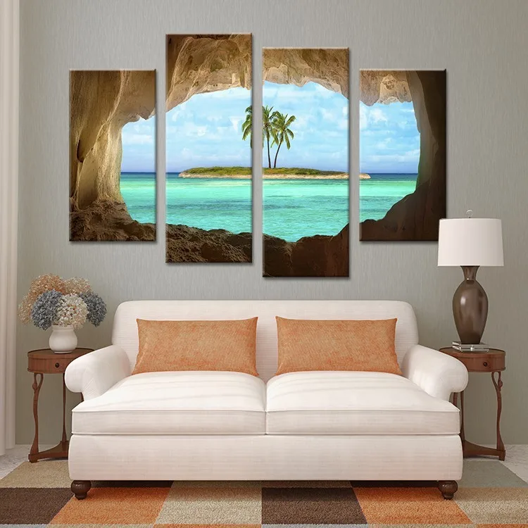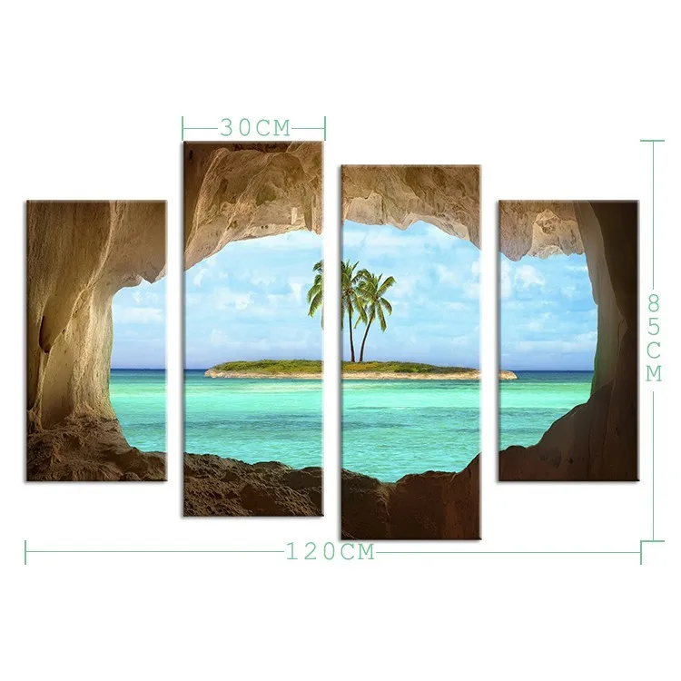 Frame 4 Piece Coconut Trees Island Canvas Painting Home Decoration Pictures Wall Pictures For Living Room Modular Pictures